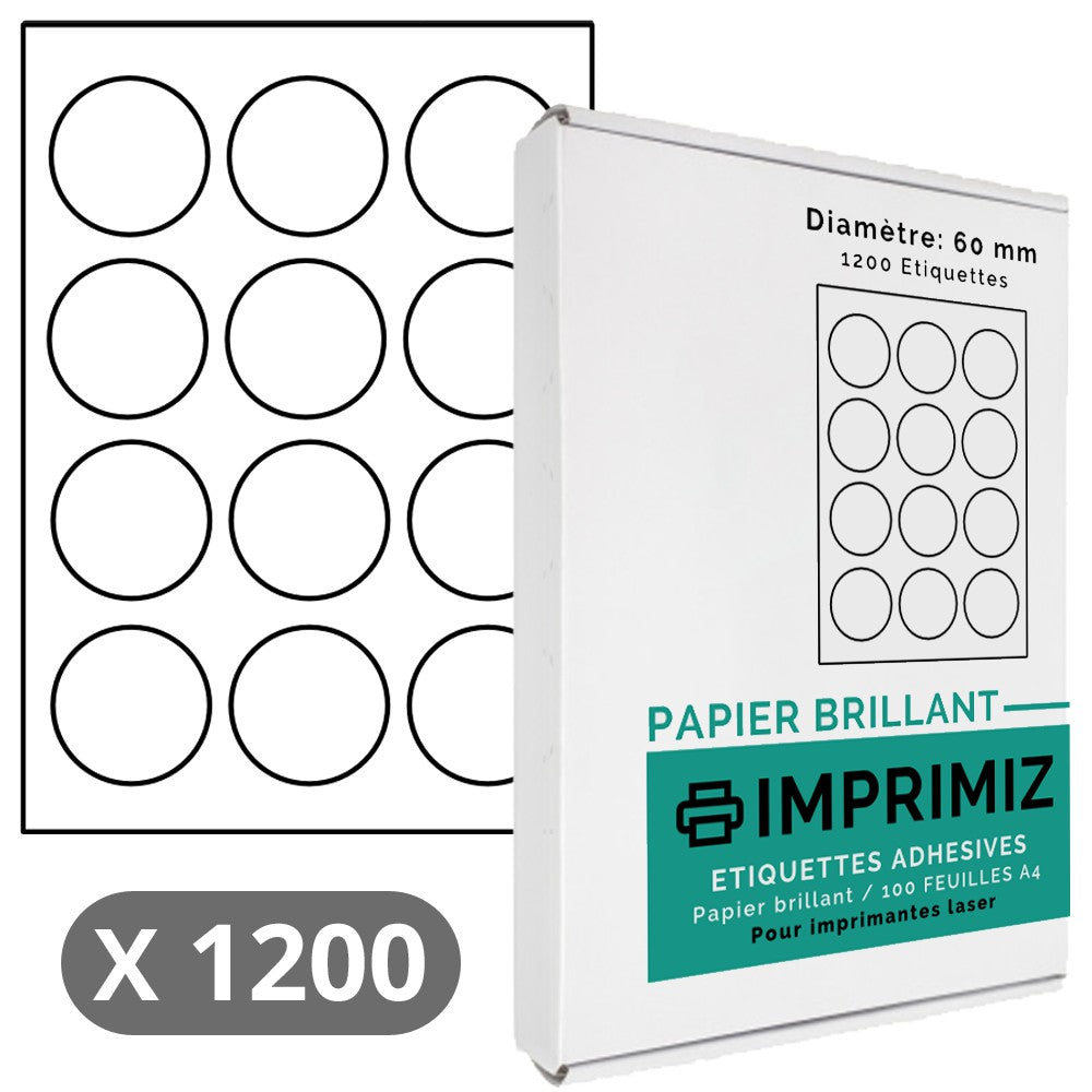 1200 Round Labels 60 mm in diameter - 100 A4 Sheets - Glossy Paper